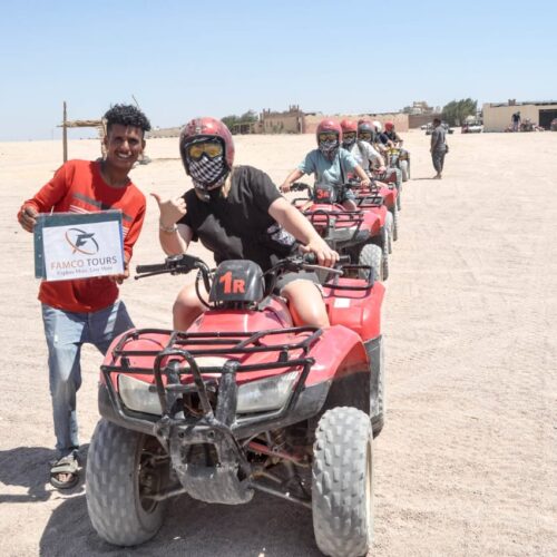 Erlebe die unendliche Weite der ägyptischen Wüste mit einer privaten 3-stündigen ATV-Quad-Wüstensafari – ein exklusives Abenteuer, das Action, Natur und Kultur perfekt verbindet. Diese einzigartige Tour gehört zu den beliebtesten Hurghada Ausflügen von Famco Tours und bietet dir ein unvergessliches Erlebnis voller Adrenalin, Freiheit und atemberaubender Landschaften.
